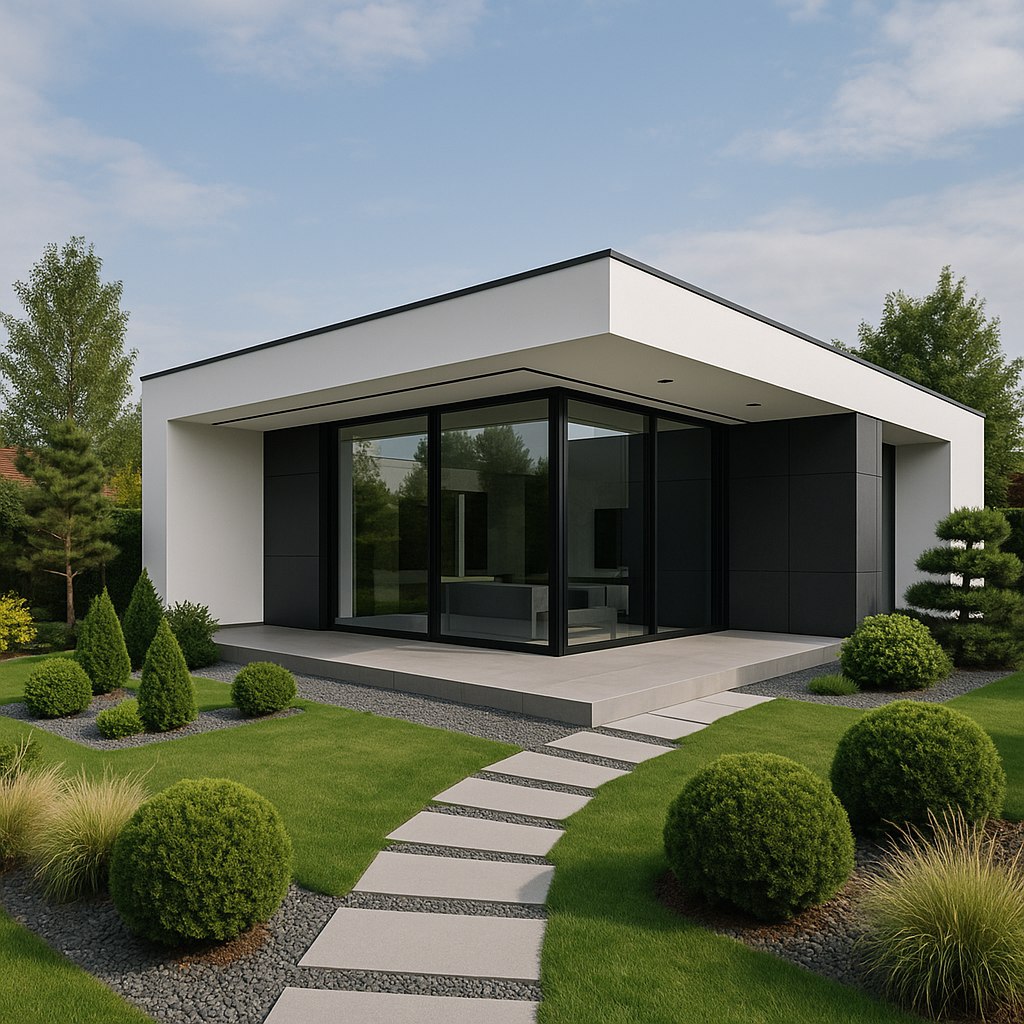 - Газоны и декоративные дорожки. Компактные аккуратно подстриженные газоны и дорожки, вымощенные гравием, деревом или плиткой, создают впечатление ухоженности. Они зрительно структурируют и одновременно поддерживают общую стилистику участка.