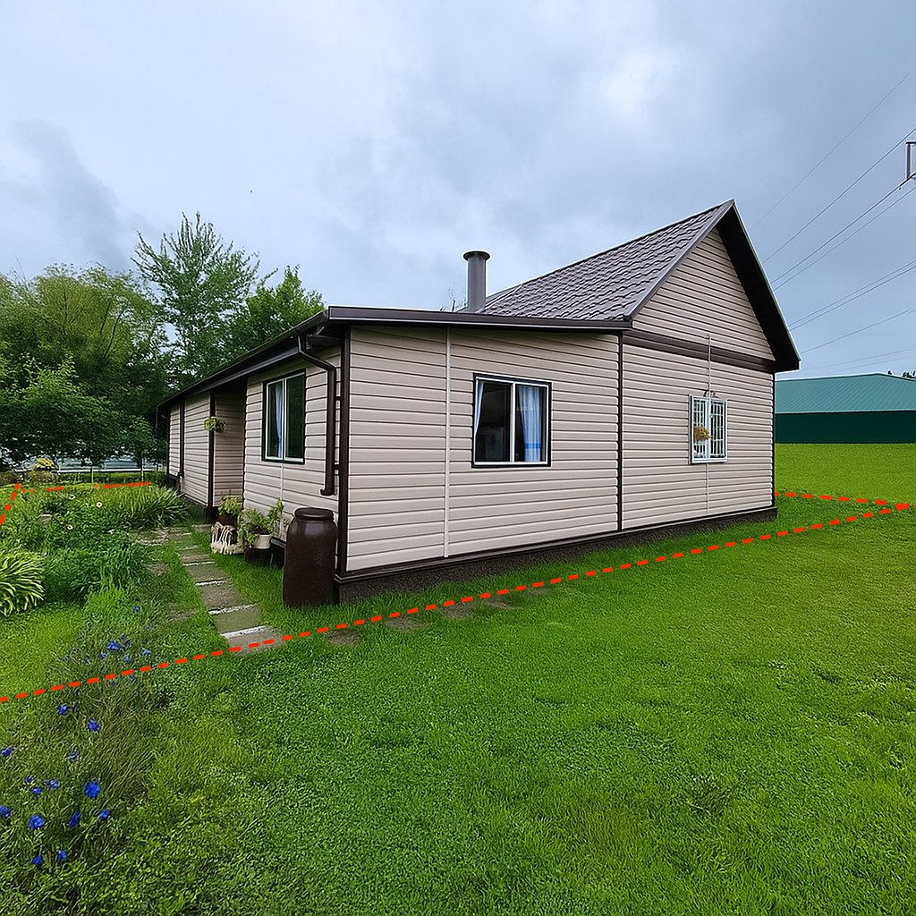 - Одноэтажный жилой дом. Оставляют отступ от границы с соседом 3 метра. Это считается достаточным для базовой противопожарной безопасности и инсоляции.
