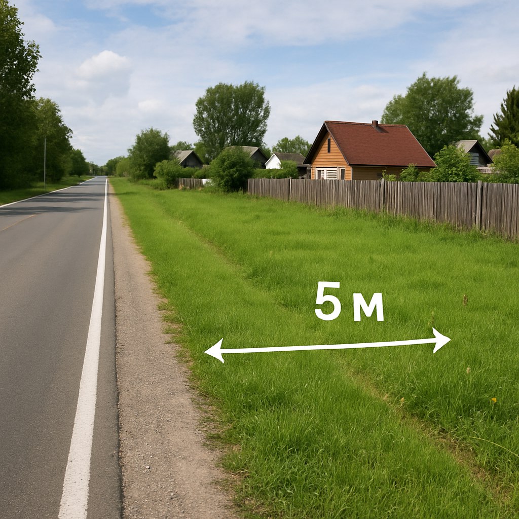 - До улицы (главная дорога) отступают 5 м — это дистанция от так называемой «красной линии», которая отделяет частные земли от общественной территории.